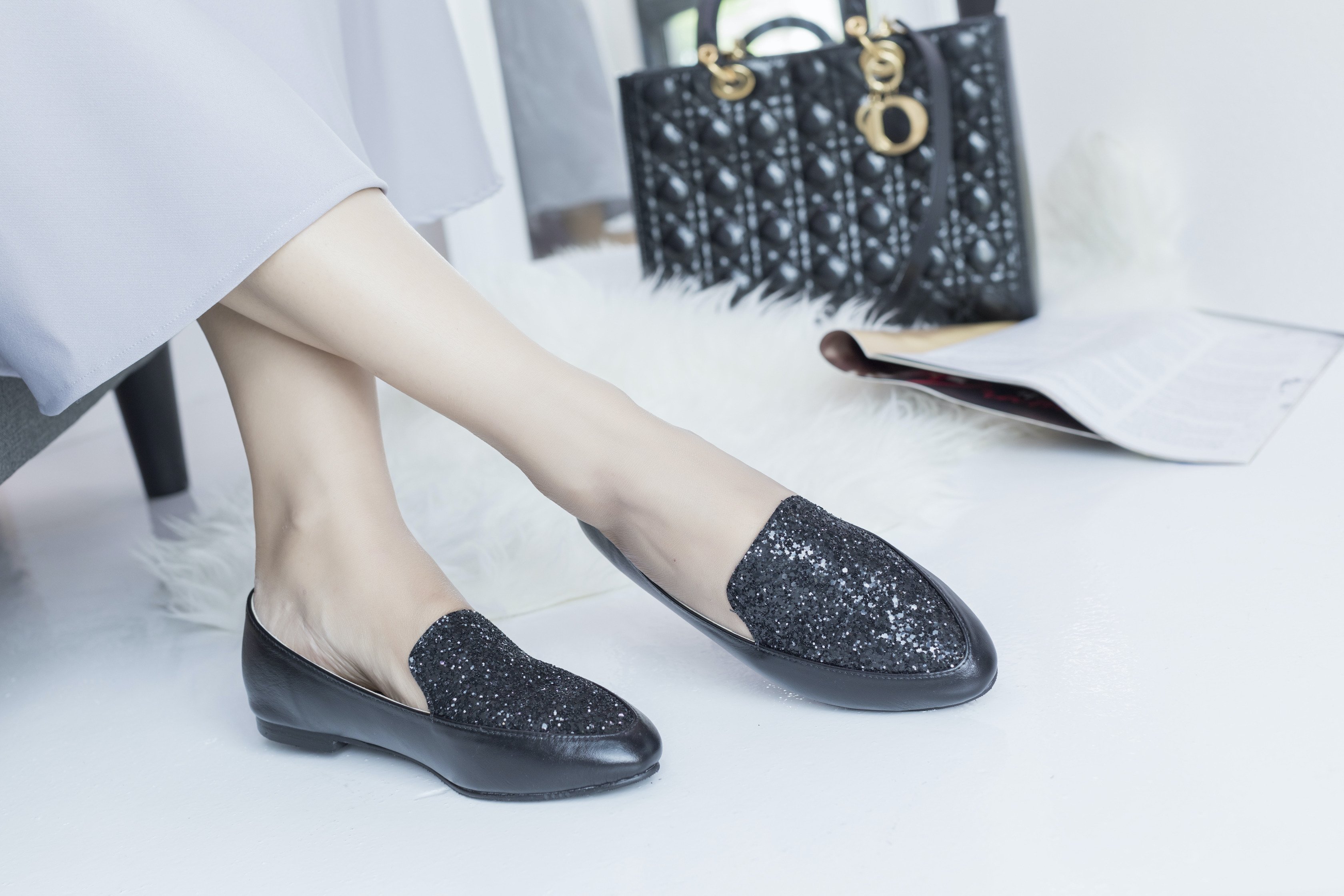รองเท้าคัตชู ส้นเตี้ย หนังแท้