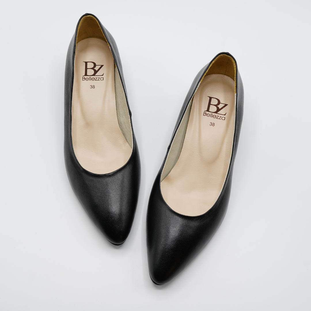 รองเท้าคัตชูหัวแหลม ส้นสูง หนังแท้